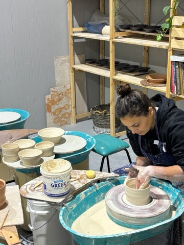 Class includes use of your own wheel, clay, glazing and firing of up to 3 works to take home at the end. Additional pieces are able to be made and fired and may be charged an additional cost.